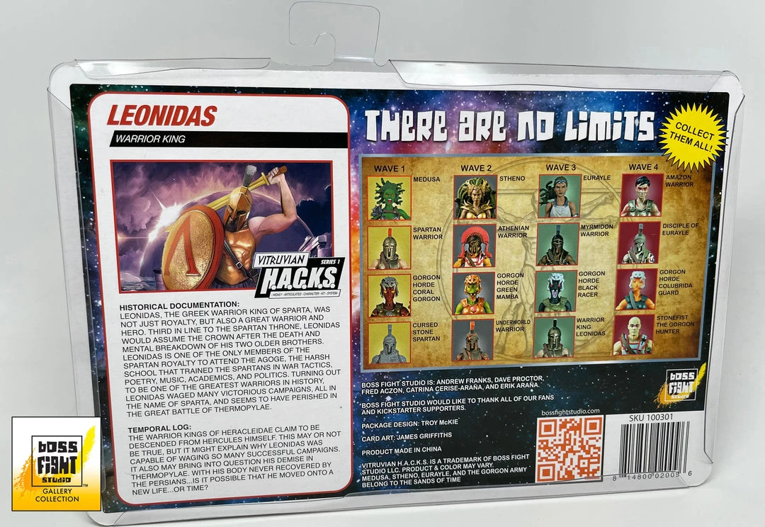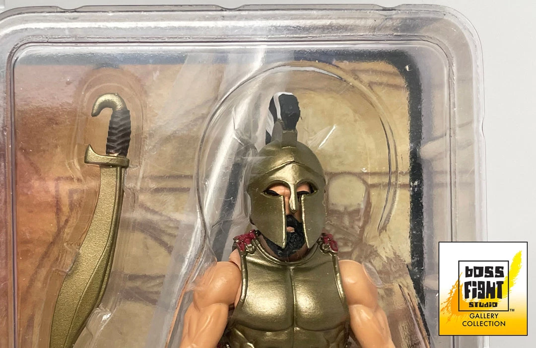 This extremely rare pre-production sample shows version one of Leonidas in his packaging with his helmet on.