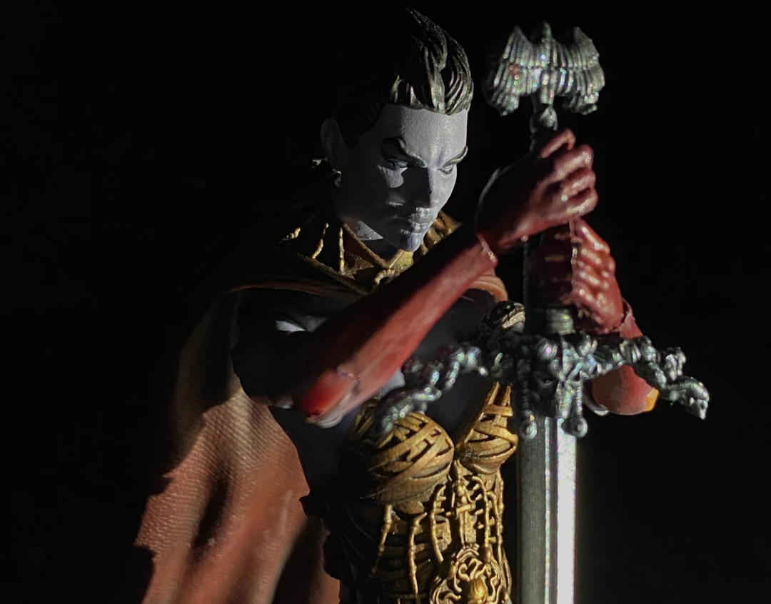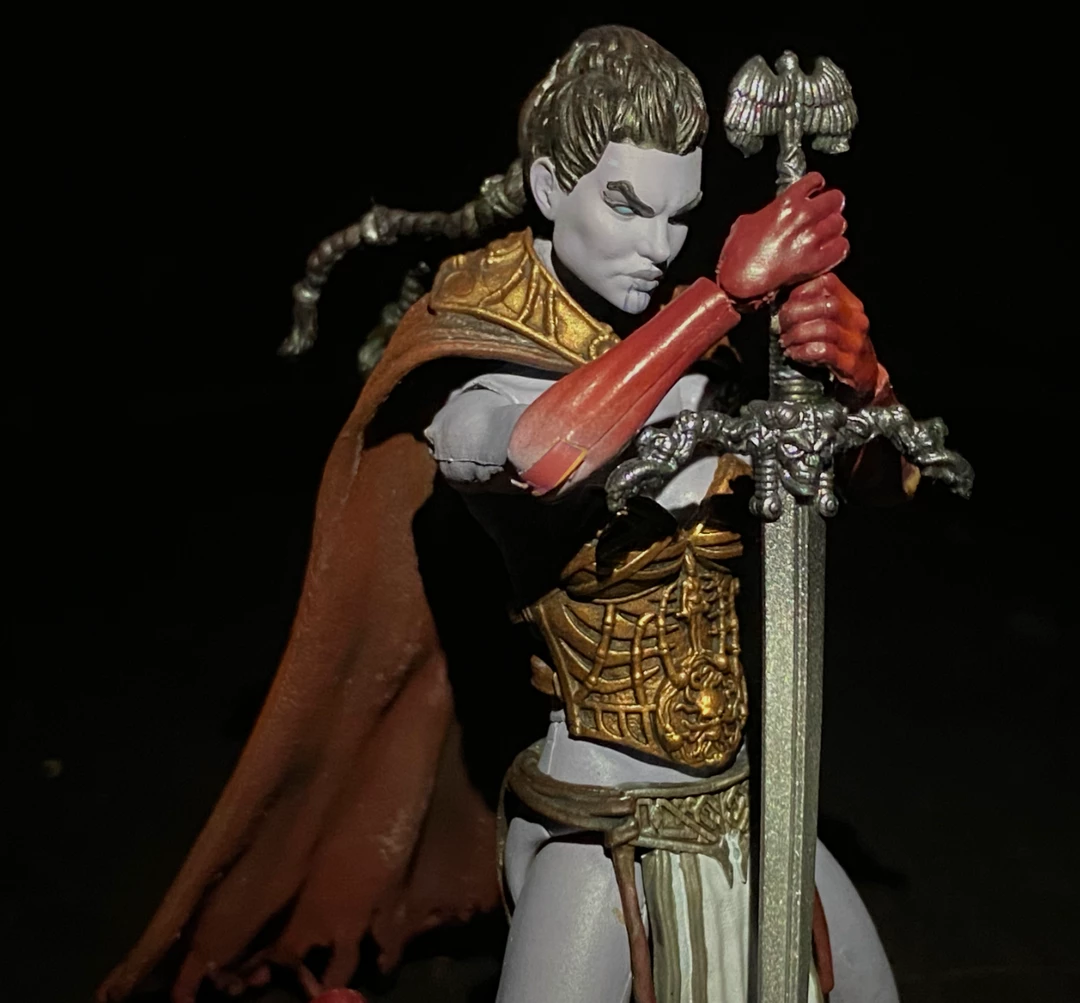 This dangerously beautiful specimen is ready to fight her way to the top. The detailed and fully articulated figure comes packaged with an alternate head with a bone helmet, magical wing accessories, a fighting sword, and removable secondaries including her cape and gorgeous clothes.Â