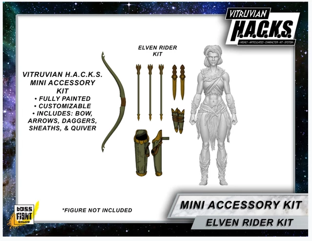 The perfect complement to the Elven Tack Kit comes the Elven Rider Mini Accessory Kit. Fully painted accessory gear kit.