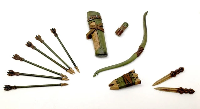 Includes: bow, arrows, knives, knife sheaths, and quiver