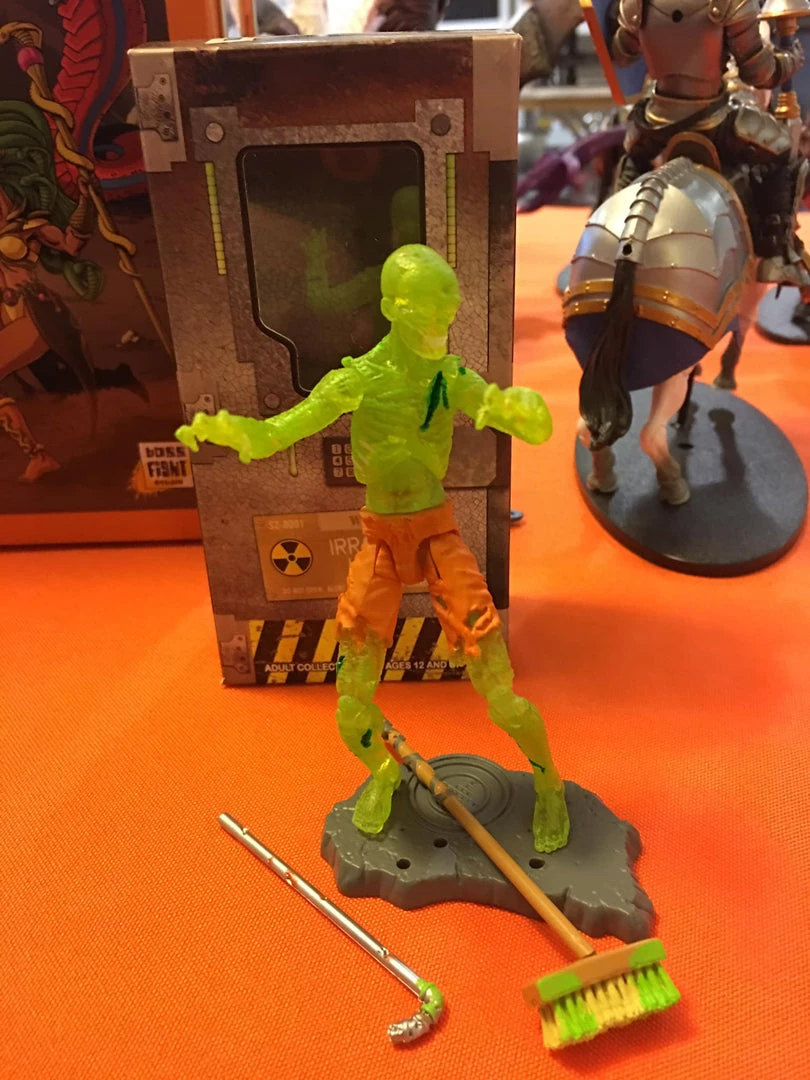 The Irradiated Zombie comes with broom, pipe, and stand.